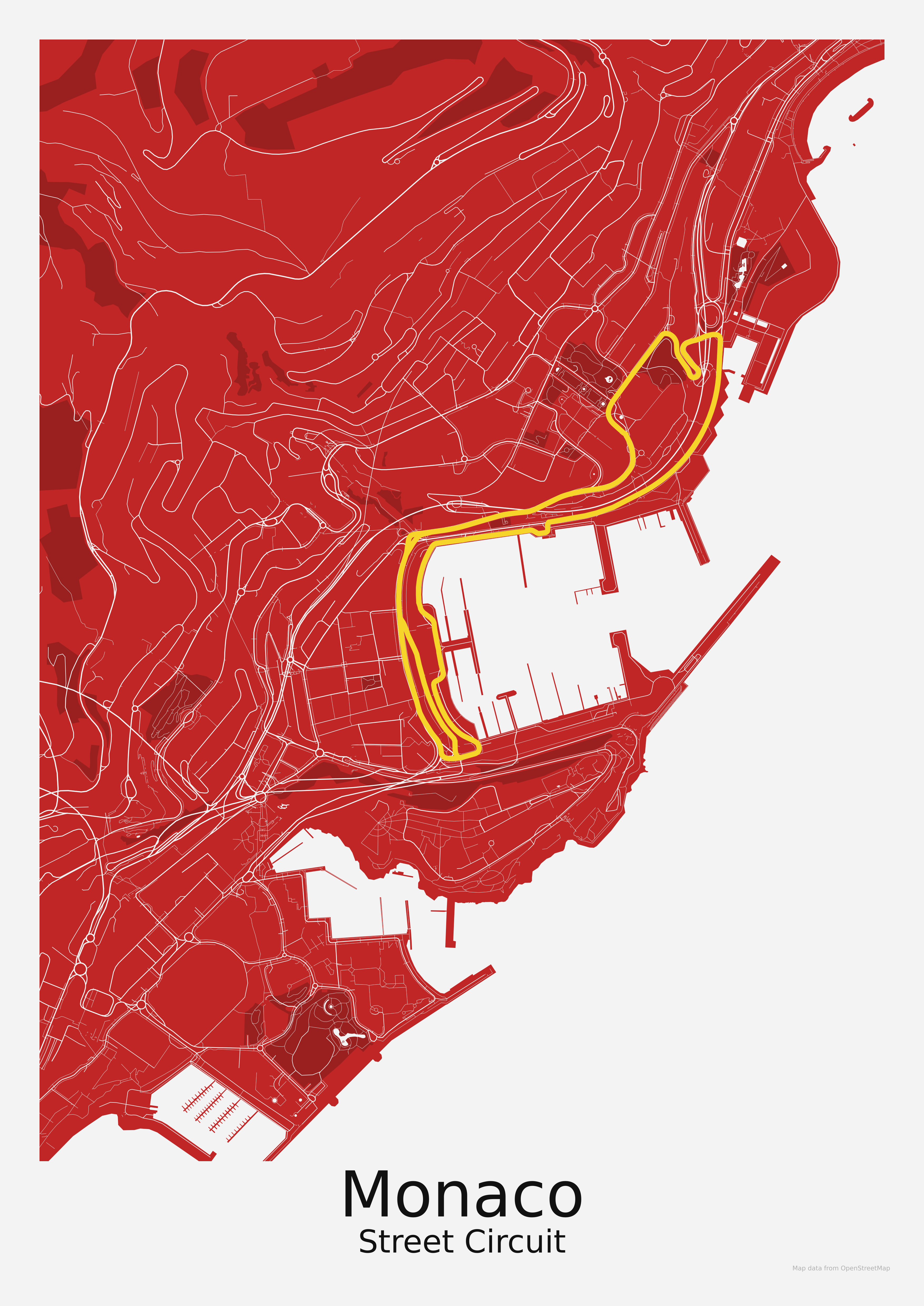 Check out my repo if you’d like such posters for yourself. In the example configs, there are a few color themes and street circuits to choose from, or you can create your own.